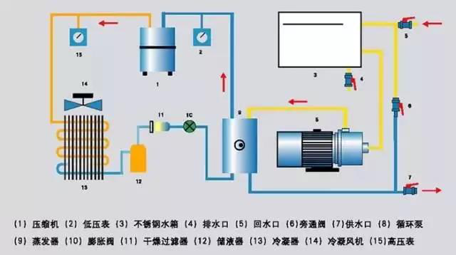 1.防止和減少工業(yè)冷水機(jī)的管道結(jié)垢,以提高冷凝器和蒸發(fā)器的換熱效率。補(bǔ)充水如果水處理做的不好,碳酸氫鈣和碳酸氫鎂受熱產(chǎn)生的碳酸鈣和碳酸鎂會(huì)沉積在管道上。使導(dǎo)熱性能下降,影響冷凝器和蒸發(fā)器的換熱效率,并使冷水機(jī)運(yùn)行的電費(fèi)大幅度上升。此時(shí)除了采用水處理技術(shù)外,還可以利用管道定期自動(dòng)清洗設(shè)備進(jìn)行管道清洗,節(jié)省電量的同時(shí)可提升冷水機(jī)制冷效果。