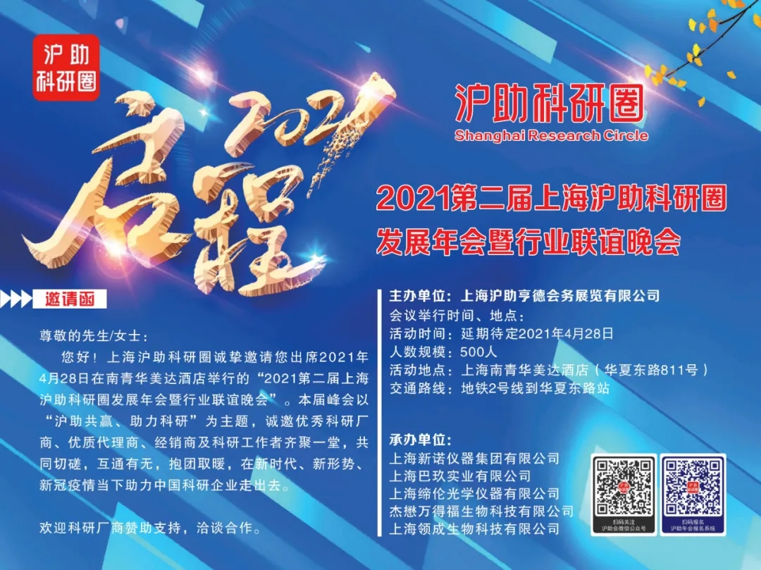 2021第二屆上海滬助科研圈發展年會暨行業聯誼晚會定于2021年4月28日在上海南青華美達酒店舉行。本屆峰會以“滬助共贏、助力科研”為主題,邀請了優秀的科研廠商、優質代理商、經銷商及科研工作者齊聚一堂,共同切磋,互通有無,在新時代、新形勢、疫情當下助力中國科研企業走出去...