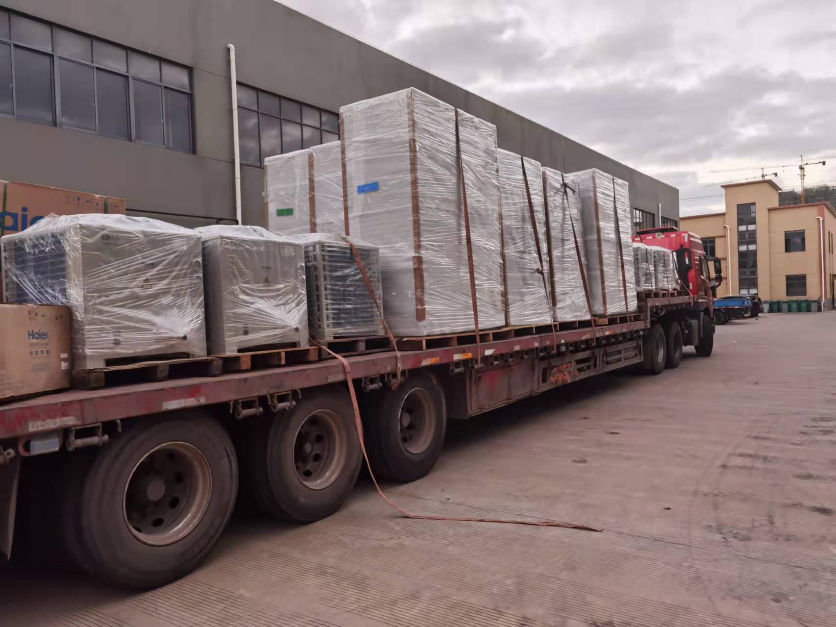 春節臨至,夏季的臨時迎來了制冷空調最忙碌的旺季。在上海眾有的廠區,記者看到,幾輛大貨車車在等待裝運,數名裝卸工人正在緊張搬運貨物。一片繁忙景象,員工們正在全力裝運,寓于著2022年里上海眾有定戰而全勝!