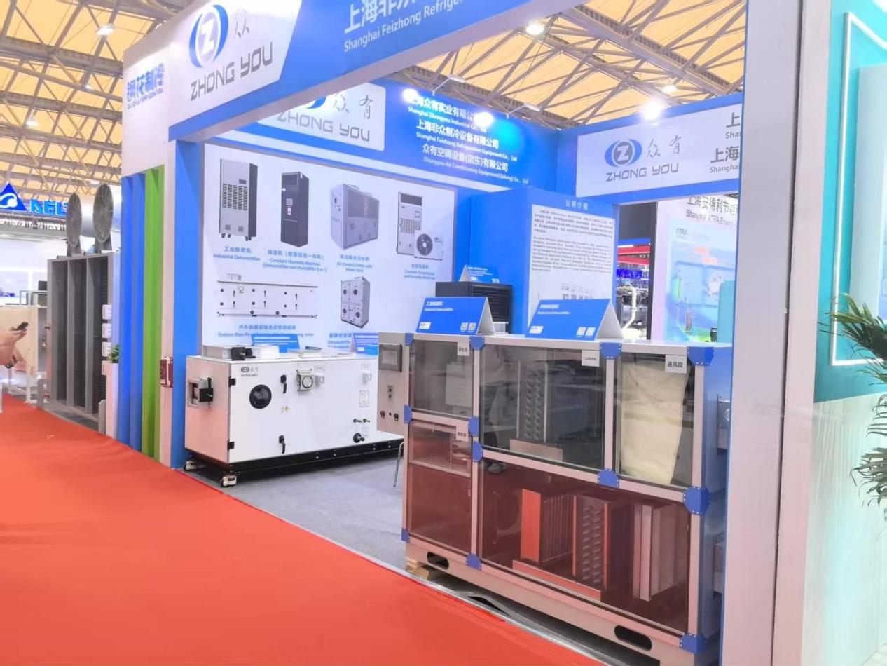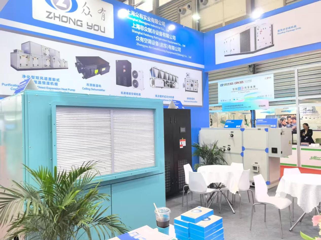 本次展覽中,眾有實業展示了多款創新產品,參展的產品線豐富多樣,涵蓋了工業除濕機、機房精密空調機組、船用水冷調溫型除濕空調機組、凈化型直膨式變頻恒溫恒濕機組以及恒濕機(除濕加濕一體機)等多種設備。這些產品不僅在設計上體現了現代工業美學,更在性能上實現了高效節能和低碳環保的結合,充分展現了公司在制冷領域的強大研發實力和創新能力。