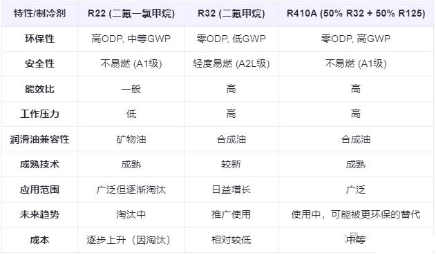 高效率:R410A的工作壓力大約是R221.6倍,這使得它可以在相同溫度下提供更高的蒸發溫度,從而提高熱交換器的效率。