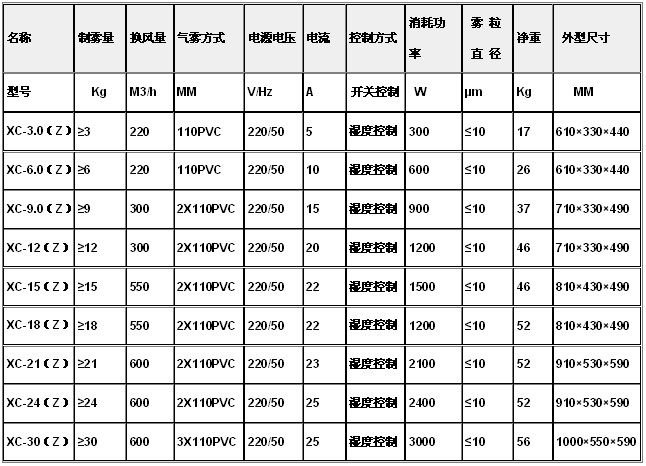 注:Z型為濕度比例自動控制方式,不帶“Z”型為手動開關(guān)型;B型為防爆型;可定制非標(biāo)設(shè)備可用純水無“白粉”污染,萬向輪移動式或支架安裝式,也可根據(jù)客戶非標(biāo)要求定做。