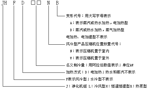 型號舉例:ZKZH55 表示名義制冷量為55kw的恒溫恒濕直膨式空調(diào)機組。