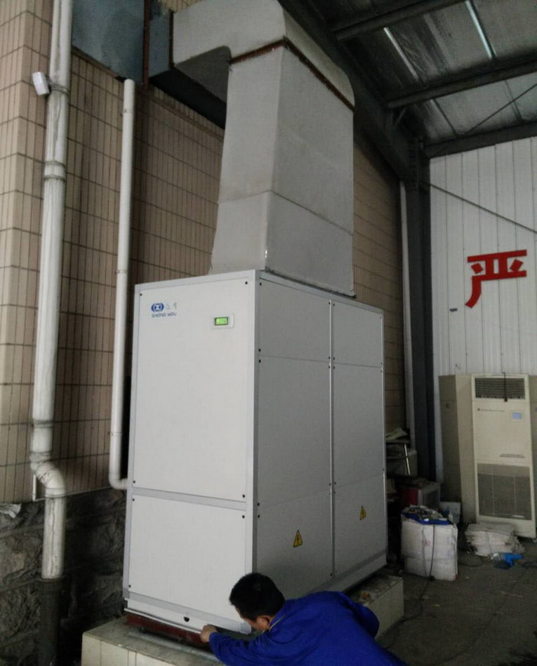 2、室內濕空氣通過蒸發器表面時,因蒸發器溫度低于濕空氣的露點溫度,空氣中的水蒸汽便冷凝析出,聚積于接水盤內,由水管排出,空氣的含濕量下降。經過除濕后的濕空氣再通過風冷冷凝器升溫,其相對濕度下降,從而達到干燥環境空氣的目的。